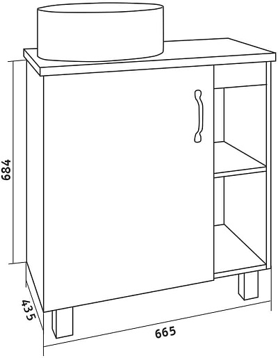- 1 дверца, 2 открытые полки.