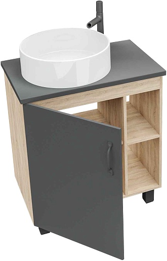- Столешница из МДФ с покрытием серой матовой пленкой.