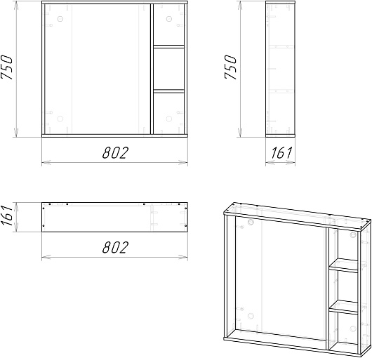 - Размер (ШxВxГ): 802x750x161 мм.