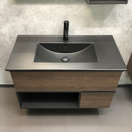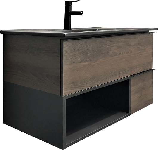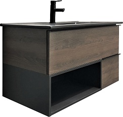 Тумба с раковиной Франкфурт 90 90EMB подвесная дуб шоколадно-коричневый/черная
