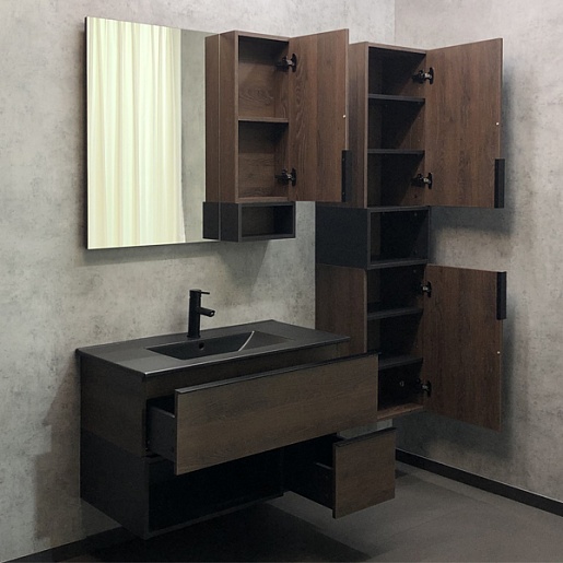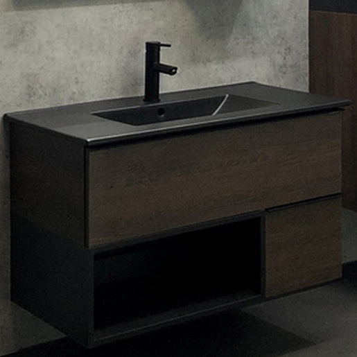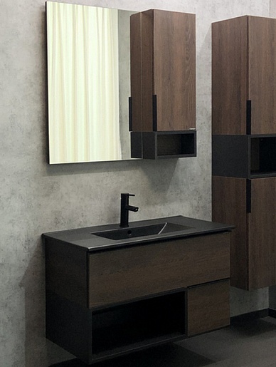 Comforty Мебель для ванной Франкфурт 90 90EMB подвесная дуб шоколадно-коричневый/черная