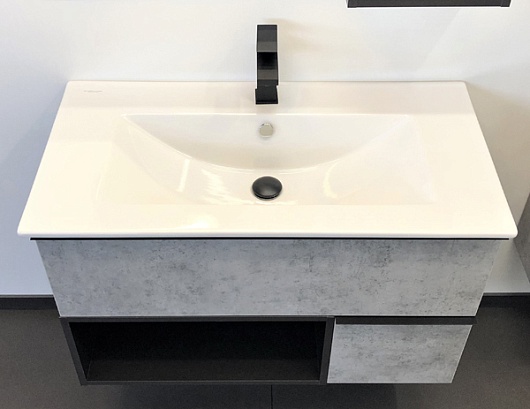 Тумба с раковиной Франкфурт 90 подвесная бетон светлый/черная