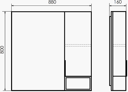 - Размер (ШxВxГ): 880x800x160 мм.