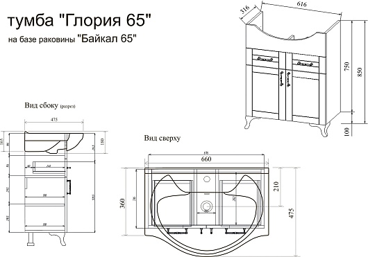 Тумба с раковиной Sanflor Глория 65 - арт. С04592 / 1.WH10.9.651.