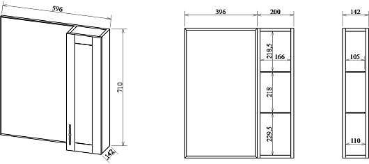 - Размер (ШxВxГ): 596 x 710 x 142 мм.