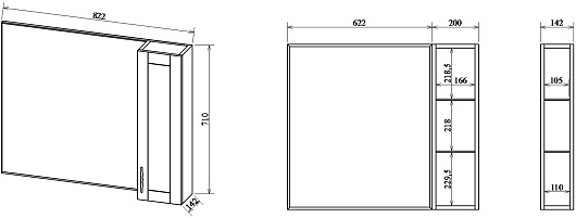 - Размер (ШxВxГ): 822 x 710 x 142 мм.