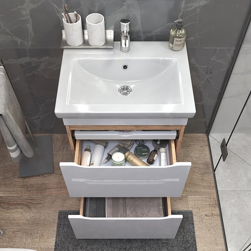 Тумба с раковиной Vigo Grani 600-0-2 - арт. 201 дуб золотой / S-UM-COM60/1-w VIGO.