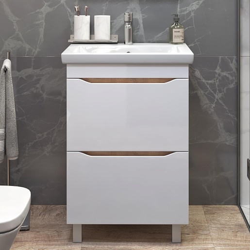 Тумба под раковину Grani 600-0-2 белая/дуб золотой