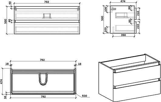 В комплекте: тумба, раковина, зеркало, крепеж.