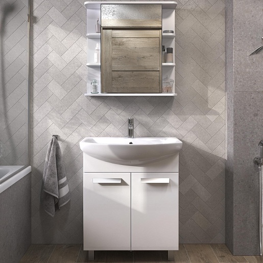 В комплекте: тумба, раковина, зеркальный шкаф, крепеж, ножка (3 шт.).