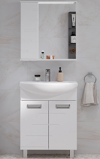 Комплектация: тумба, раковина, зеркальный шкаф, ножка (4 шт.), крепеж.