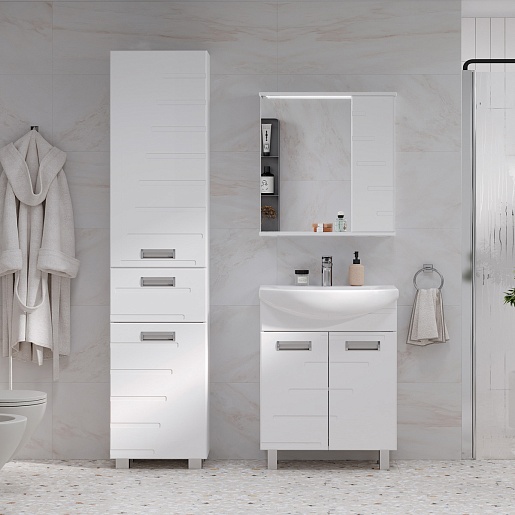 Комплектация: тумба, раковина, зеркальный шкаф, ножка (4 шт.), крепеж.