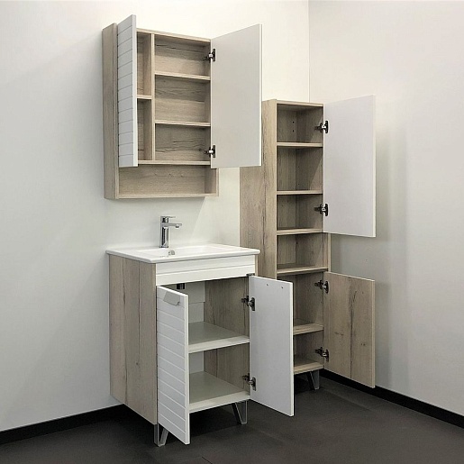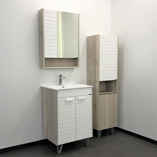 Comforty Мебель для ванной Клеон 60Н белая матовая/дуб дымчатый