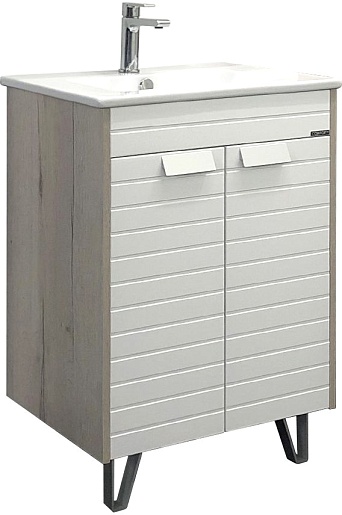Тумба с раковиной Клеон 60Н белая матовая/дуб дымчатый