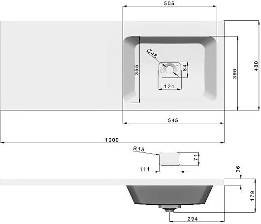 - Раковина из литьевого мрамора со слив-переливом.