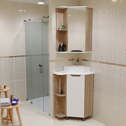 Зеркальный шкаф Корнер 56 угловой белый/дуб