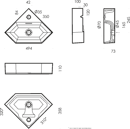 - Накладная раковина со слив-переливом.