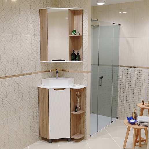 Зеркальный шкаф Корнер 56 угловой белый/дуб