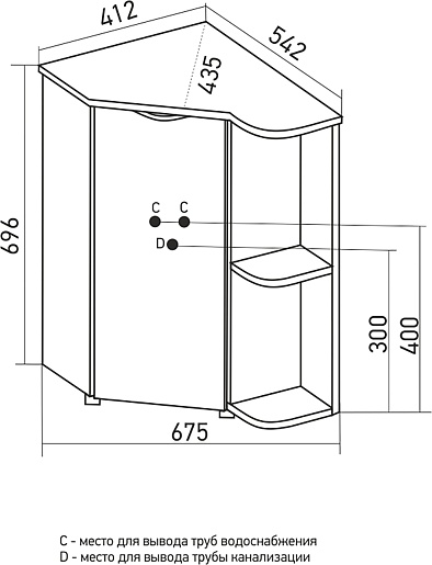 Тумба с раковиной Mixline Корнер 67.5 R угловая - арт. 548962 / 548189.