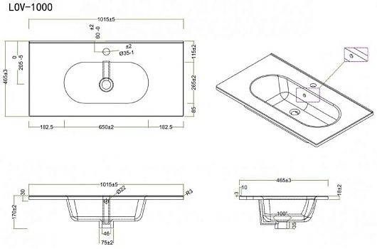 - Раковина из литьевого мрамора, LOV-1000-LVB