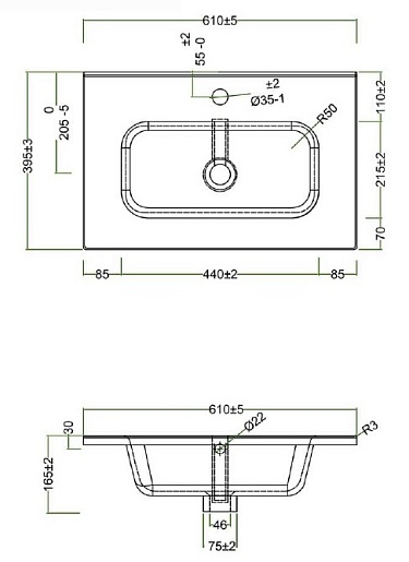 - База под раковину подвесная с двумя выкатными ящиками, с доводчиками, KRAFT39-600/390-2C-PIA-RT