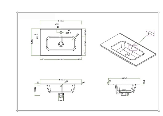 - Раковина из литьевого мрамора, BB600/390ETL