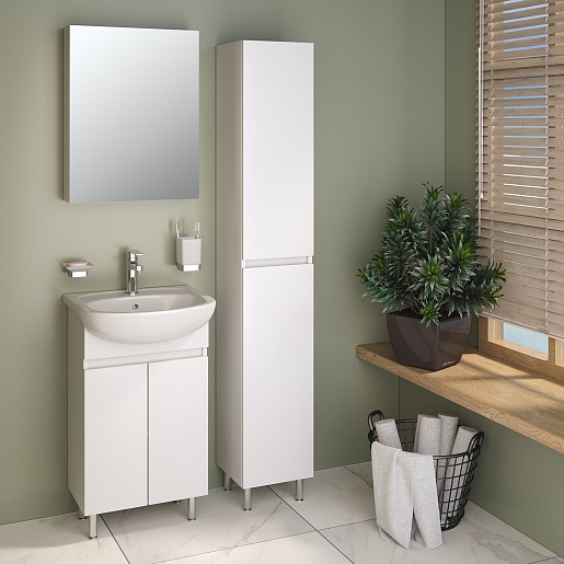 В комплекте: тумба, раковина, зеркальный шкаф, ножка (4 шт.).