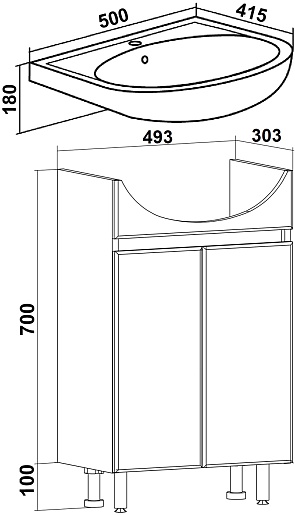Напольная тумба с раковиной Runo Лада 50 - арт. 00-00001162 (4656760151627) / 00000000152 (4620008192758).