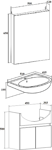 Подвесная тумба с раковиной Runo Лада 50 - арт. 00-00001366 (4656760154956) / 00000000152 (4620008192758).