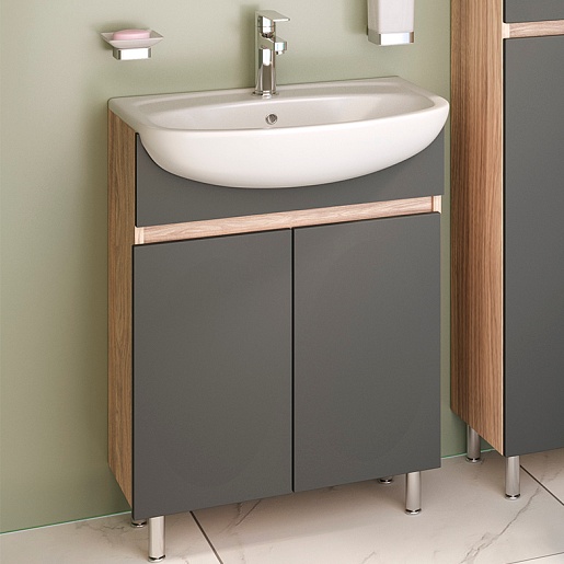 Runo Мебель для ванной Лада 60 графит/дуб серый