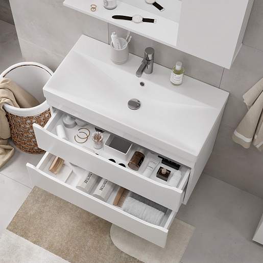 Комплектация: тумба, раковина, зеркальный шкаф, крепеж.