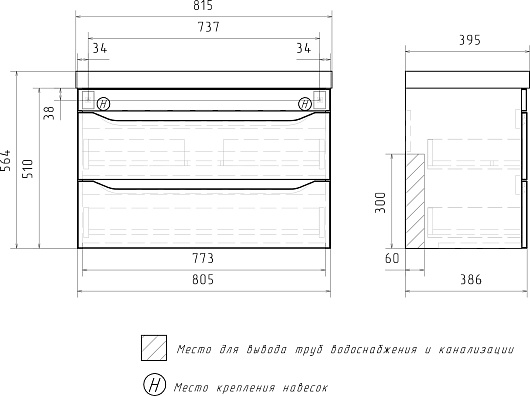 Подвесная тумба с раковиной Volna Lake 80.2Y - арт. tpLAKE80.2Y-01 / 9696-80.