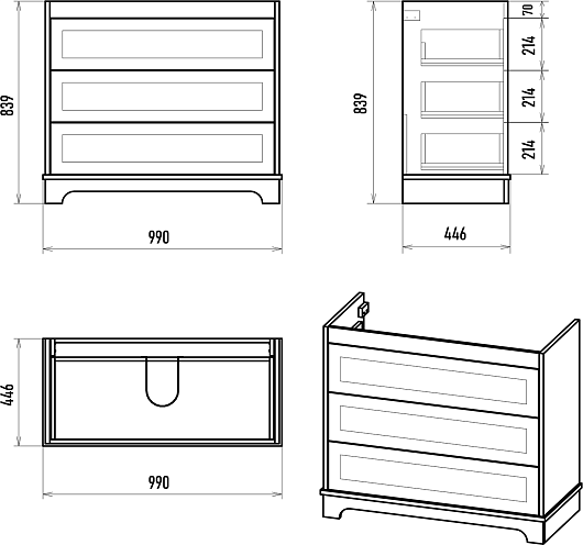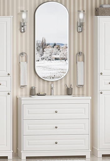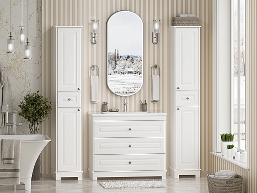 В комплекте: тумба, раковина, зеркало, крепеж, ножки.