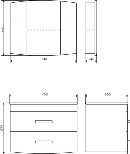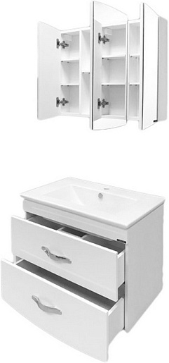 В комплекте: тумба, раковина, зеркальный шкаф, крепеж.
