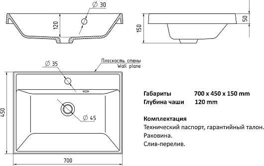 Комплектация: тумба, раковина, зеркальный шкаф, ножка (4 шт.).