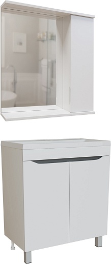 Комплектация: тумба, раковина, зеркальный шкаф, ножка (4 шт.).