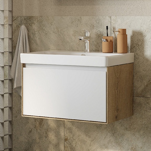 Тумба под раковину Либерти 70 белая/дуб эльвезия