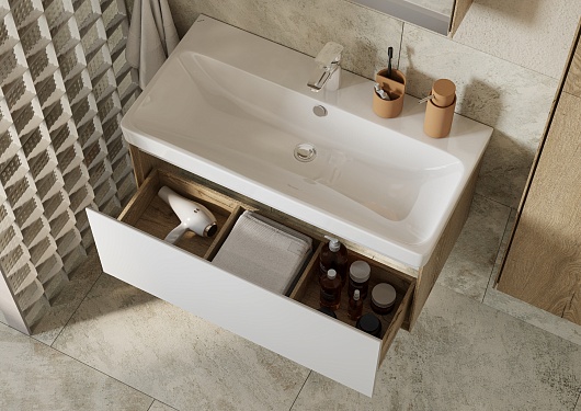Тумба под раковину Либерти 90 белая/дуб эльвезия