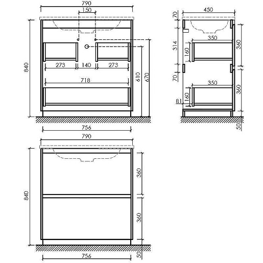 Тумба под раковину Libra Floor 80 дуб галифакс натуральный