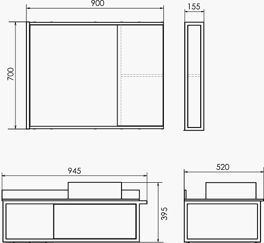 - Материал корпуса/фасада: ЛДСП, металл / ЛДСП, зеркало.