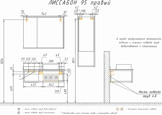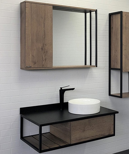 В комплекте: тумба, раковина, столешница, зеркальный шкаф, крепеж.