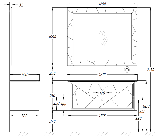 Тумба под раковину Луиджи 120 подвесная белая матовая