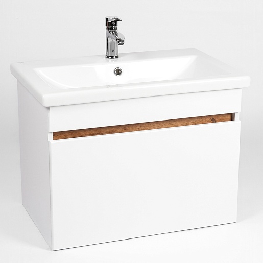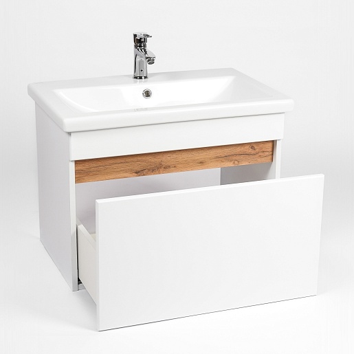 Тумба под раковину Мальта 60 1 ящик подвесная белая/дуб вотан