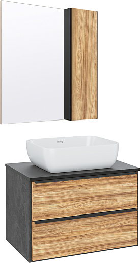 В комплекте: тумба, раковина, зеркальный шкаф, крепеж.