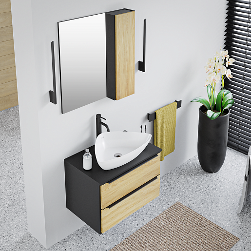 Тумба под раковину Мальта 70 подвесная дуб/черная