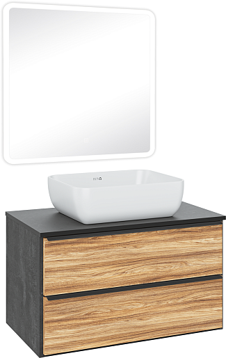 Runo Мебель для ванной Мальта 85 Cuatro подвесная дуб/черная
