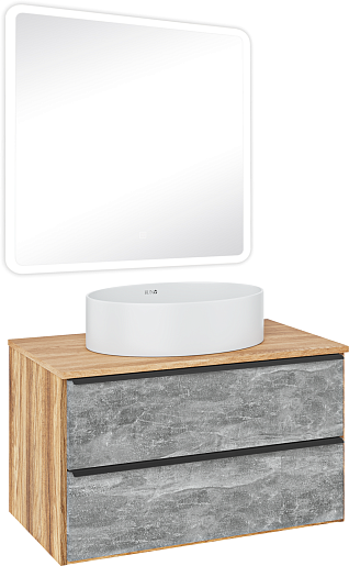 Runo Мебель для ванной Мальта 85 Ovale подвесная серая/дуб