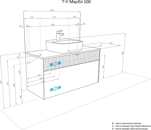 Тумба с раковиной Акватон Марбл 100 - арт. 1A276301MH4C0 / 32700B000.