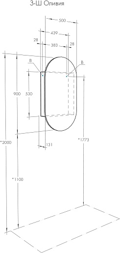 - Размер (ШxВxГ): 500x900x131 мм.