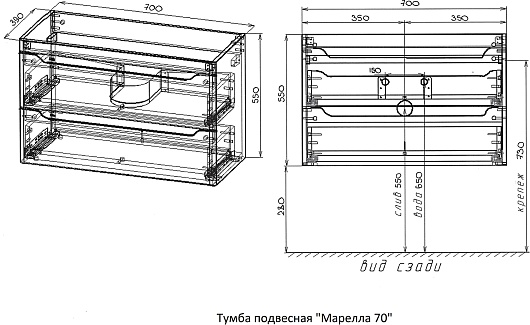 Подвесная тумба с раковиной Style Line Марелла 70 Люкс Plus антискрейтч - арт. СС-00002408 / СС-00002368.